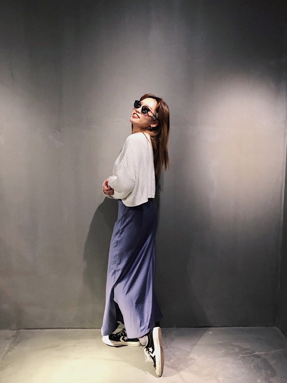 サテン生地でスリットも入ってるから歩くたびにヒラヒラ動きがあって可愛い🥰 色違いのグリーンもオススメなので是非ZOZOTOWNで✔️🖤