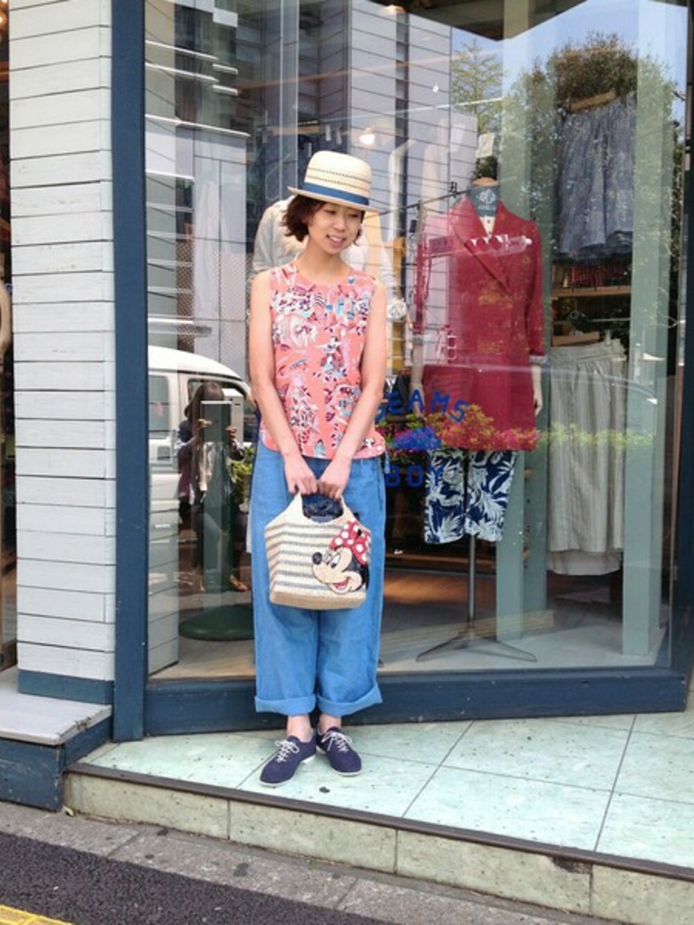 軽くて優しい色合いを軸に、コーディネートしました。 アロハタンクトップは、 ひんやり涼しいので夏の先物買いにいかがでしょうか?
