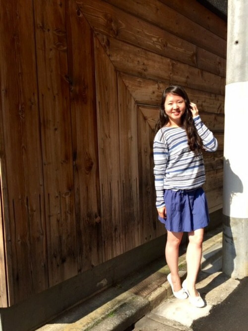 Manamiのニット/セーター「ブルーマルチボーダー プルオーバー (長袖)」を使ったコーディネート