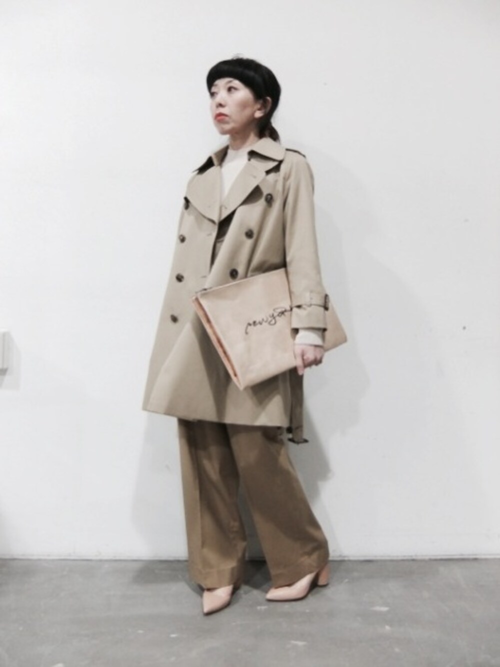 春の定番コートといえばトレンチコート あえて全身ワントーンで合わせました 定番もワントーンにすると個性的に✨ 大人ワントーンコーデ