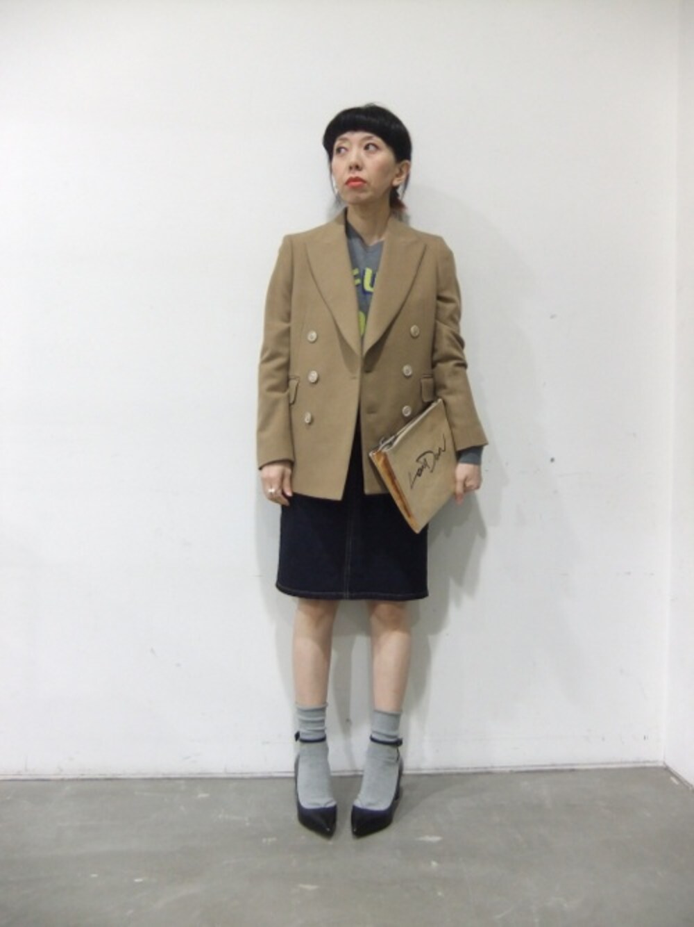 キャメル系アウターを着ると気分が明るくなりますよね〜 ダブルジャケットという事でスクールっぽく合わせてみました✨