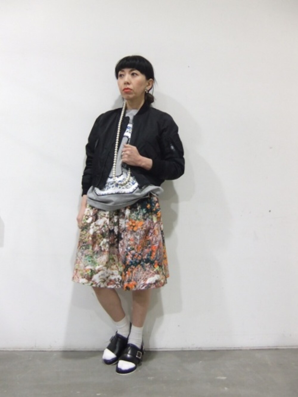 やはり夏柄物が気になりますよね〜 可愛目フレアスカートもMA-1で外して。。。