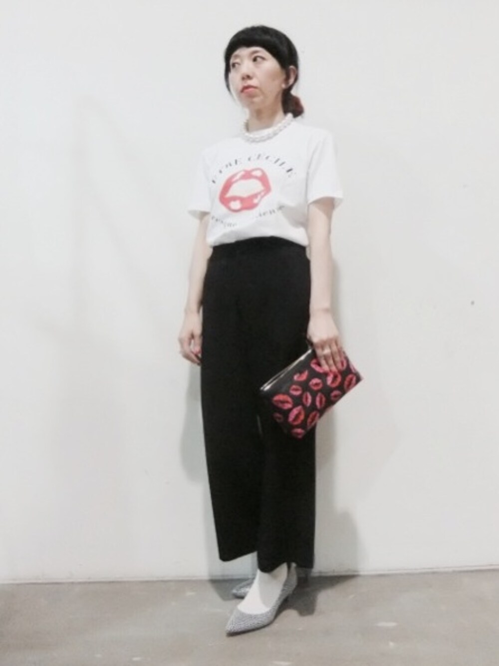 唇モチーフ👄のアイテムはテンション上がりますよね〜 Tシャツとバックでコーディネートにアクセントをつけてみました。。。