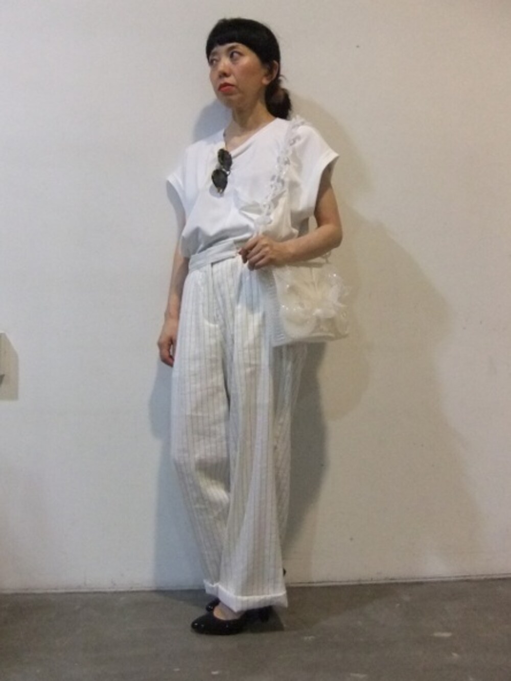 こんな暑い日はホワイトコーデで見た目から涼を感じさせるスタイリングに。。。 それにしても暑い💦
