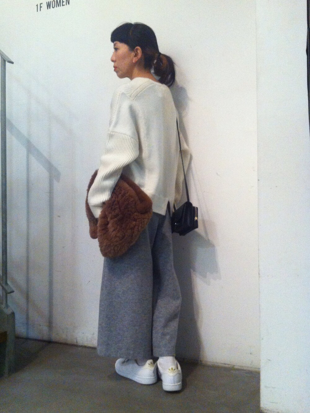楽チンなゆるコーデには小物でポイントを付けました✨ 今季ファーはプラスするだけでお洒落度上がります❗️ カジュアルスタイルにonもオススメです💁