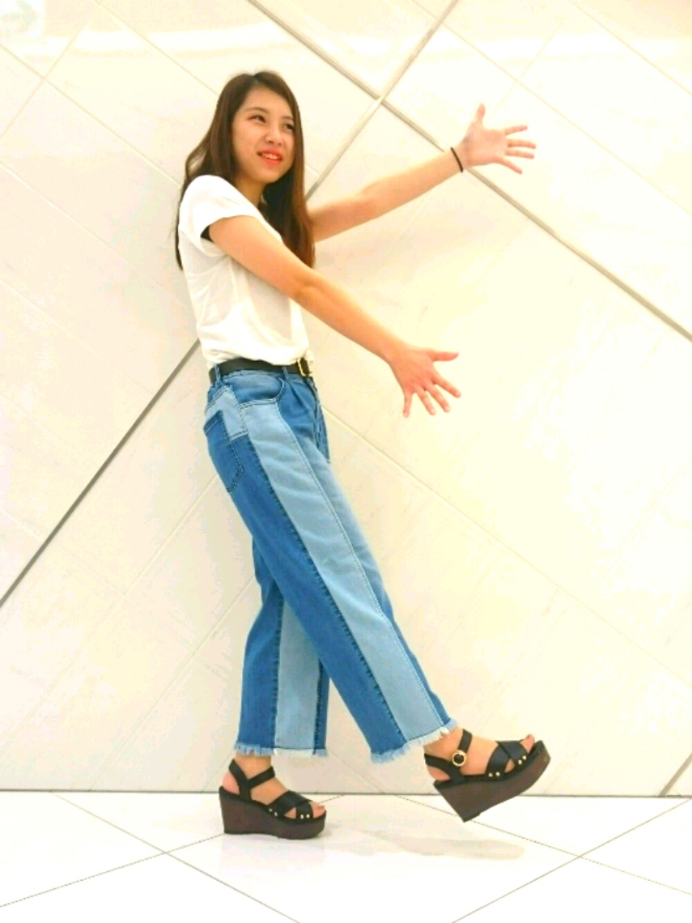 ストレッチが効いていて、動きやすく履きやすくなっています。 足元がフリンジになっているのもポイントです。