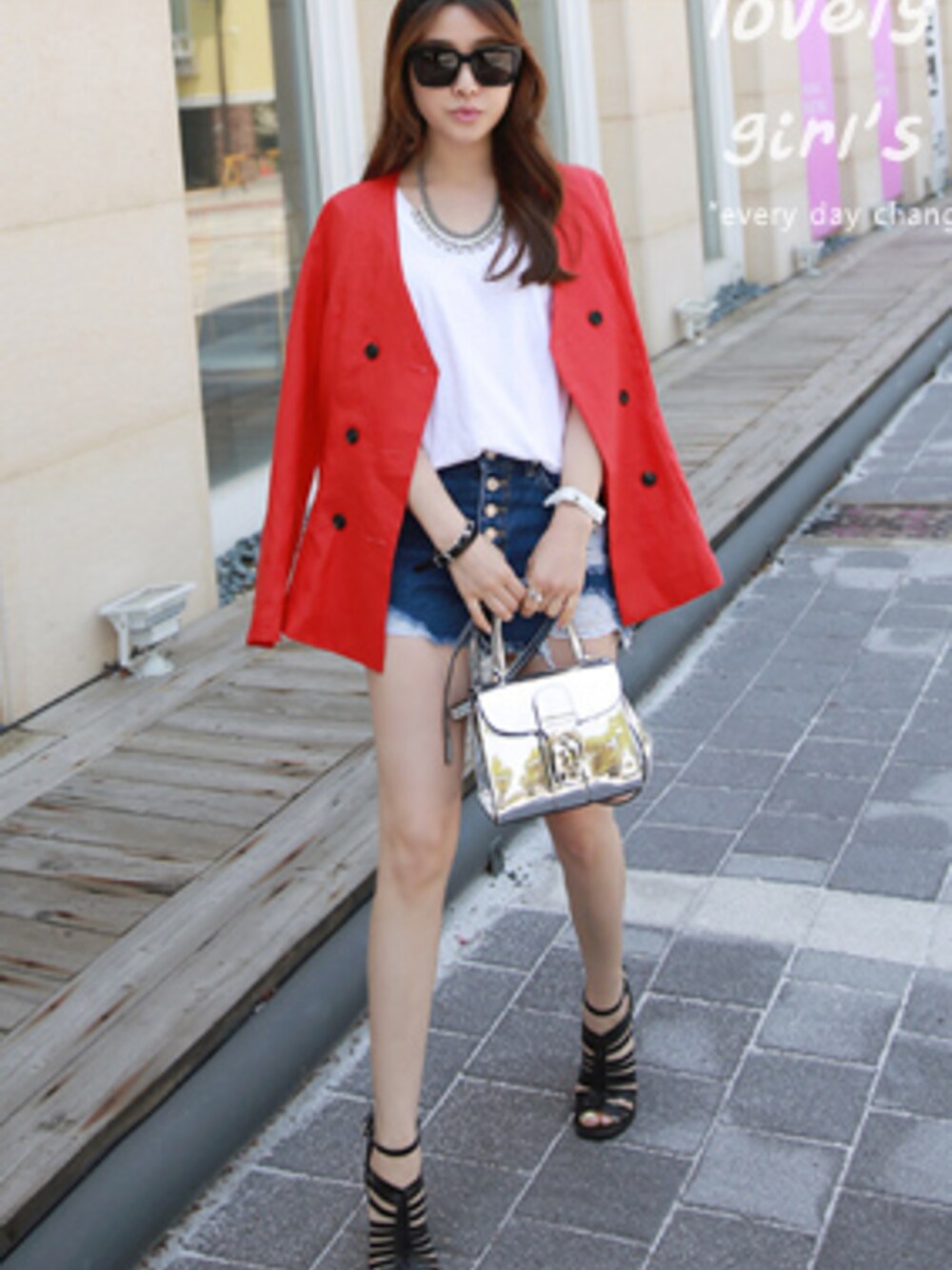 Miamasvinのノーカラージャケット「ダブルボタンノーカラーリネンジャケット」を使ったコーディネート