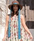 モロッコのアジラル地方でつくられる手織りラグの模様をイメージ✴︎ カラフルな幾何学模様のノースリーブワンピース◇◆ 麻混素材で夏のフォークロアスタイルにぴったりなデザインです。