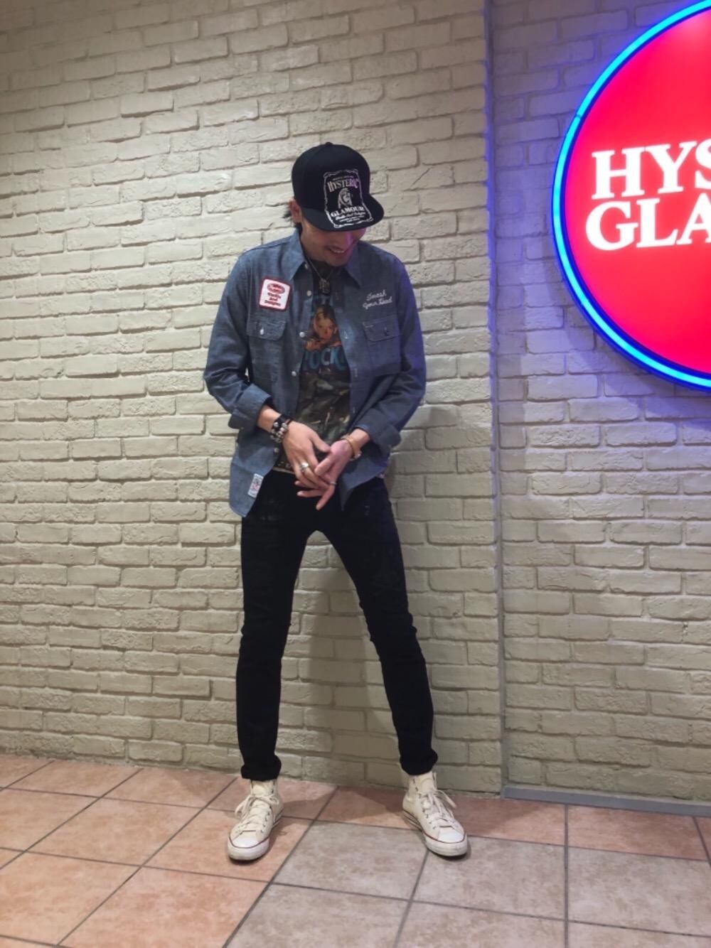 Mitachi(HYSTERIC GLAMOUR札幌ステラプレイス店)のキャップ「HYS WHISKY柄 刺繍キャップ」を使ったコーディネート