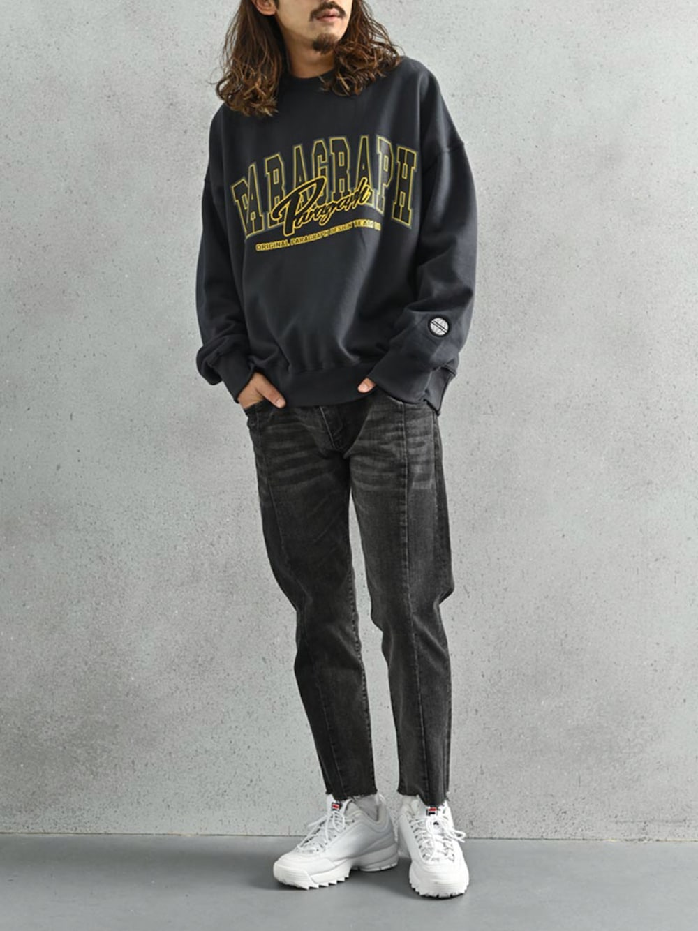 ROCKSTE【公式アカウント】のスウェット「Paragraph (パラグラフ) バーコードスウェットトレーナー」を使ったコーディネート