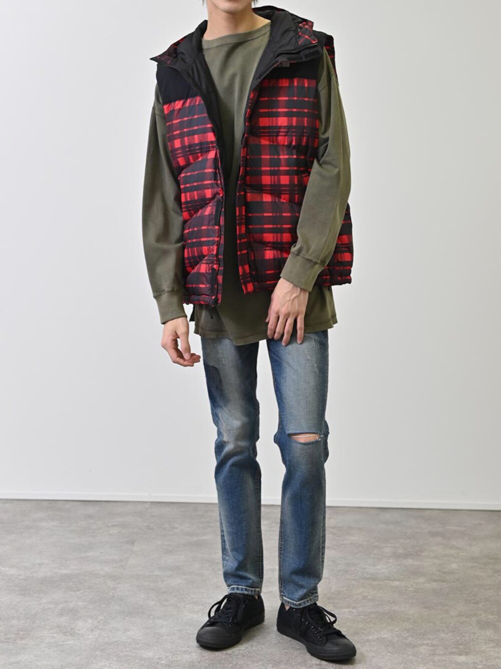 ご覧頂きありがとうございます。 赤のチェック柄のダウンベスト☺︎ Instagram ⇨ @rockste.official