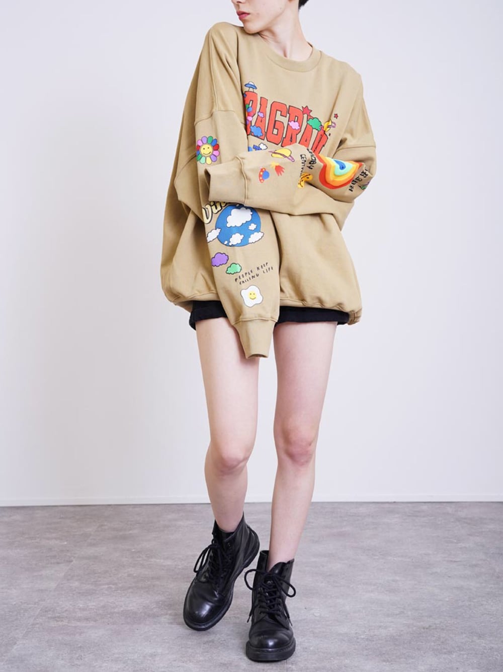 ROCKSTE【公式アカウント】のスウェット「Paragraph(パラグラフ) スマイルロゴ スウェット」を使ったコーディネート