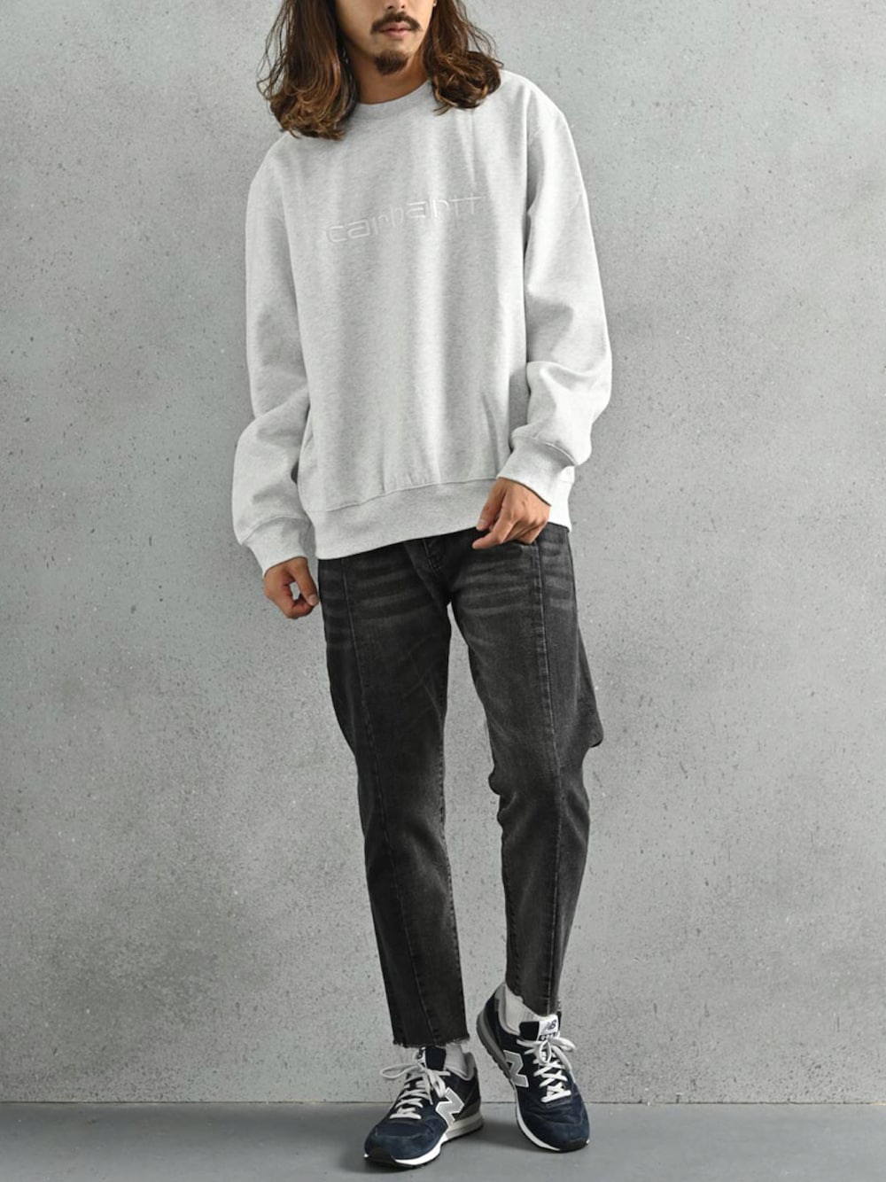 ROCKSTE【公式アカウント】のスウェット「Carhartt WIP カーハート ワークインプログレス スクリプト刺繍ロゴ スウェット トレーナー」を使ったコーディネート
