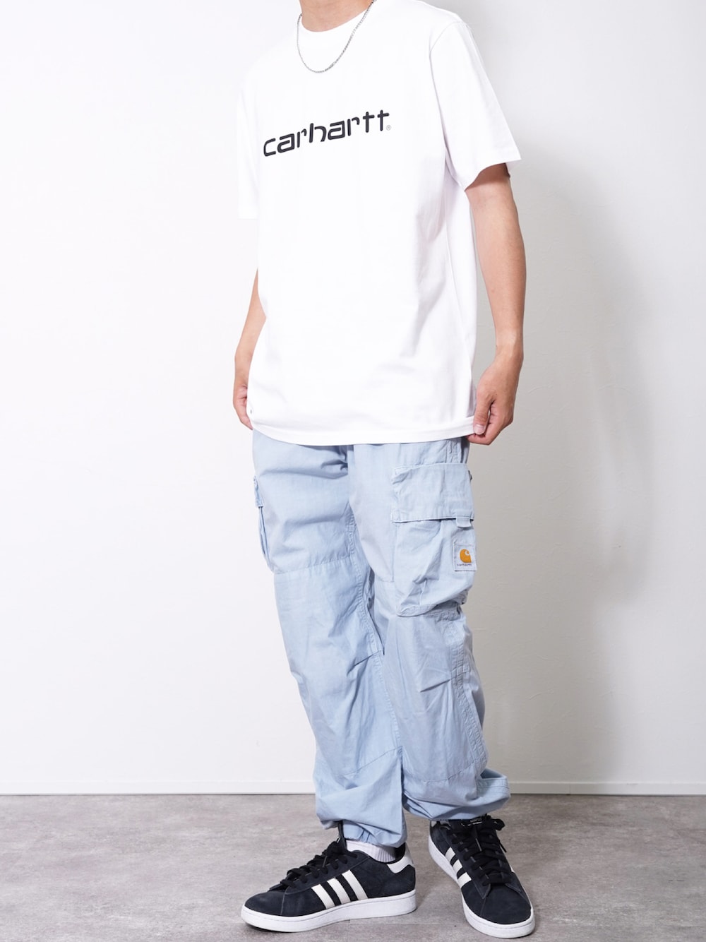 ROCKSTE【公式アカウント】のTシャツ/カットソー「Carhartt WIP カーハート ワークインプログレス スクリプト 半袖Tシャツ」を使ったコーディネート