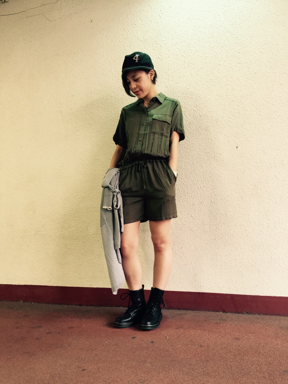 今回はミリタリーコーディネートにしてみました! オールインワンとブーツでかなりカジュアルになってしまったので、ロングカーデでバランス取ってみましたo(`ω´ )o オールインワンがレーヨンなので、キレイめにもカジュアルにも持ってこいなので、着まわせること間違い無しです! もう少し寒くなったら長袖重ねても絶対可愛い… 気になった方は是非店頭へお越しください! お待ちしておりますo(`ω´ )o