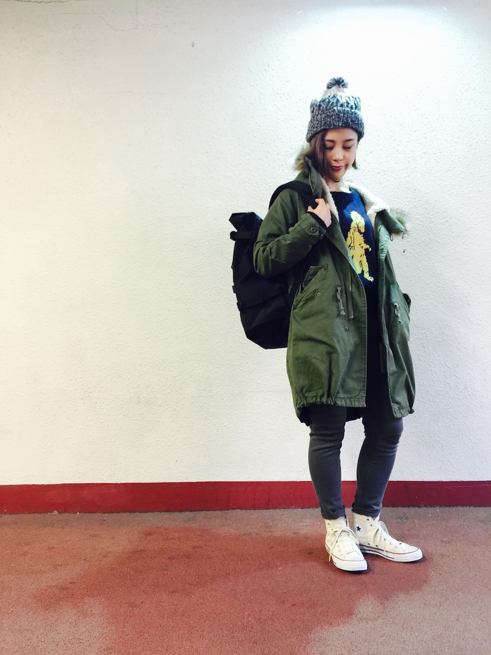 こんにちは〜! 永留でーす! モッズ入荷しましたよ〜って事で早速着てみましたよーo(`ω´ )o 恐竜ニットにスリムサルエルパンツでTHEダブルネームにしてみました! いや〜やっぱ久しぶりのパンツは安心しますな♪ こちらのモッズとっても軽くて暖かいのでオススメですよ! 気になった方は是非店頭まで♪
