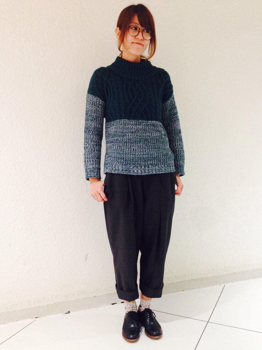 リアルコーデです! これで居たらわたしです( ´ ▽ ` ) このニットは入荷して くどー店長から ないとーっぽい!って おっしゃって頂き即買いました(笑) どの色も可愛いのですが やはりグリーンです。好きなんです緑🍀 あったかくてチクチクしないし 他の人と被らない感じが好きです😍 そしてこのゆるっとパンツが 楽ちんでたまらんとです🙆💓 そしてーーーー! 福岡の岡本店長との写メ😍📷 忘年会にて。 お久しぶりでした☆ 次お会い出来た時には ちゃんとコーデ撮りましょお*\(^o^)/*