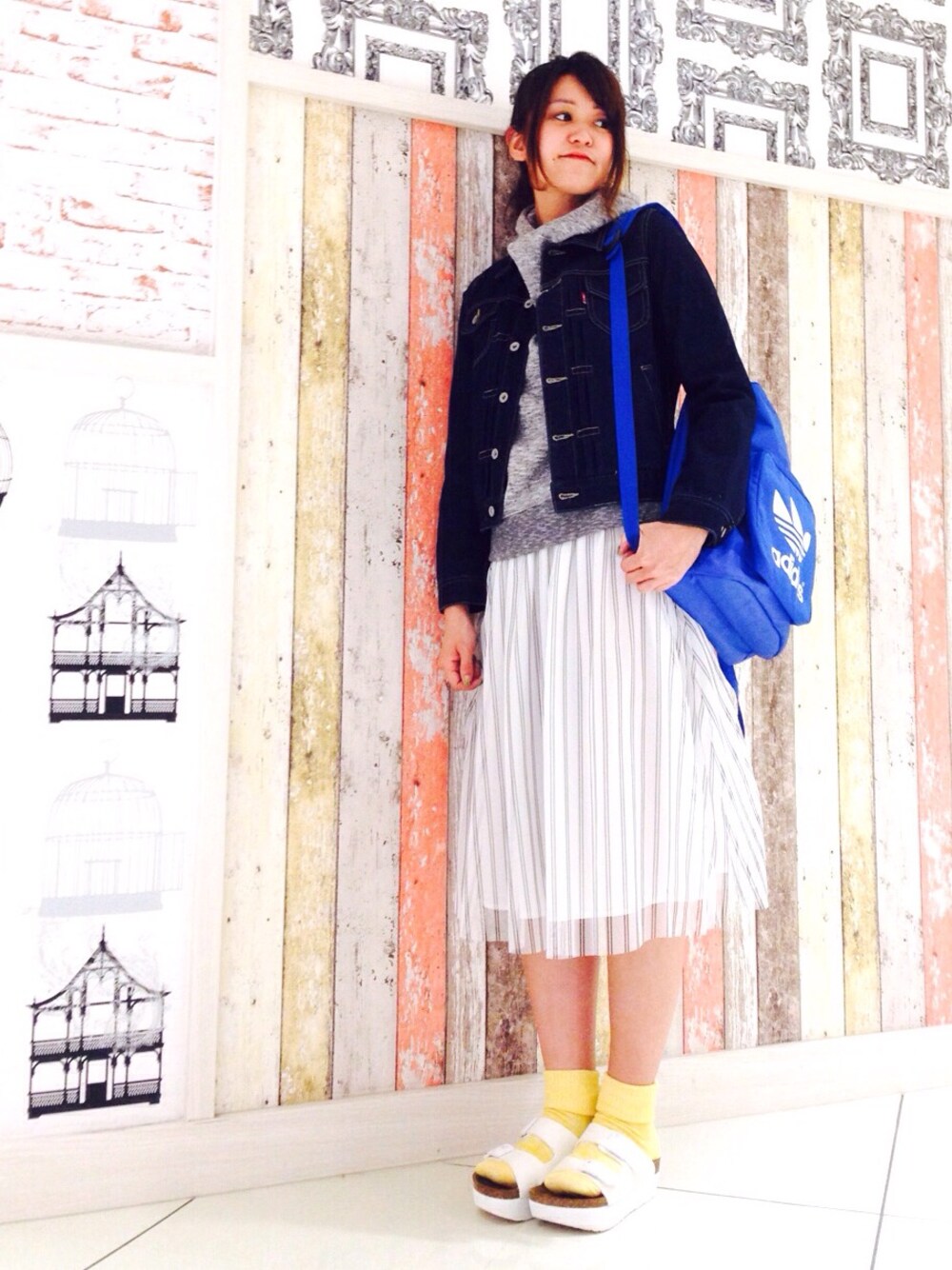 おはようございます!! お久しぶりです🙈 また宜しくお願いします🙇💓 Gジャン×パーカータグに 乗っかりまして✈︎ わたしもこのGジャン買いました〜 袖が足りる…嬉しい!!笑 そしてストライプ柄の チュールスカート! 普段履かないのでそわそわ😳 ビルケン風サンダルも 入荷しました! 白、黒、シルバーがあります🙋 ベルト調節可能です☆ 今から靴下合わせでどうですか☺️ 明日はカットカラートリートメント🐣