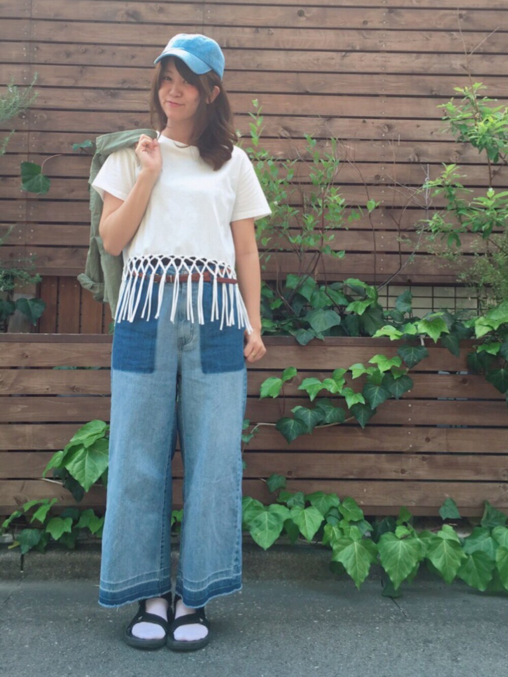こんばんは〜〜🌛 お久しぶりの更新になってしまいました… 新作のコーデです★ 裾フリンジTと 加工デニムワイドパンツ〜👖 デニム好きにはたまらんですよね❣️ GETした方も多いはず◎ このキャップもお店に色んなカラーが ありますので是非とも^o^ 最近は… 企画のお仕事も増えて 暖かくなりましたがもう秋冬です😳 可愛いの作ります! ないとー頑張ります!!! ではまた〜(=^x^=)