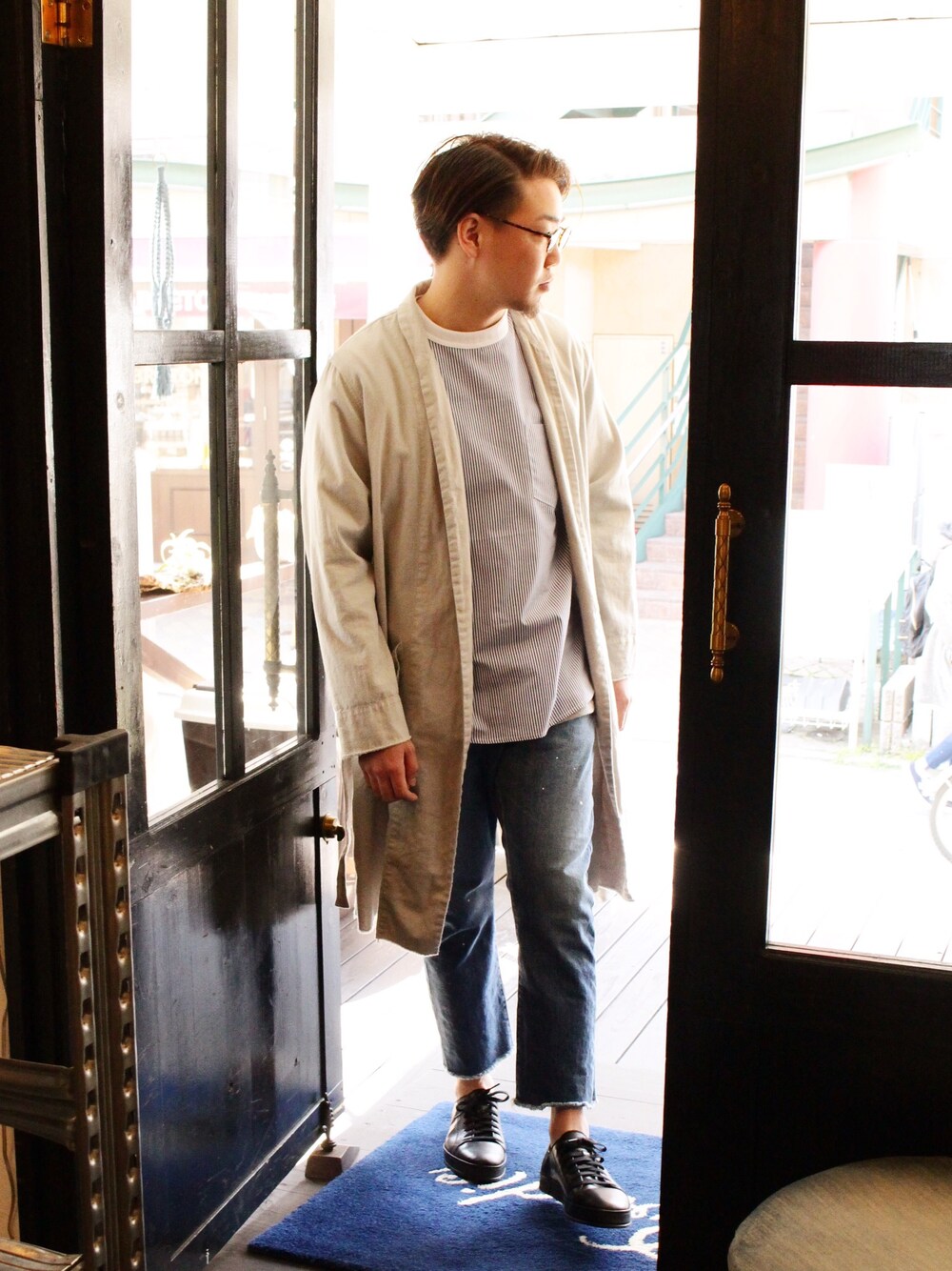 Eyewear : Sandinista×金子眼鏡 Gown : Sandinista Inner : SUNNY SPORTS Denim : Sandinista Shoes : JOLI