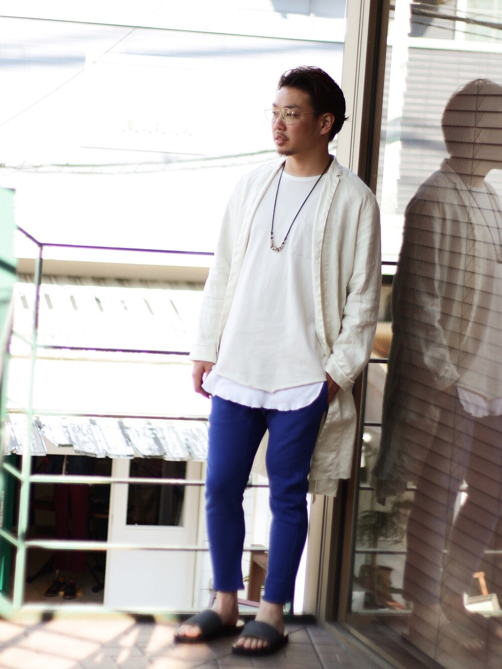 Eyewear : Sandinista×金子眼鏡 Gown : Sandinista Inner : M.A.M Pants : Sandinista Sandal : MANEBU Necklace : Sunset&Eagle