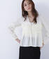 フロントのリボンデザインがポイントになり、一枚で着映えるおすすめのアイテムです。ブラウスは裾にかけてふわっと広がるペプラムシルエットのため、ボトムスはすっきりとしたナロースカートがおすすめ。ショートブーツを合わせてスタイルアップが叶う着こなしにしました。
