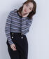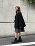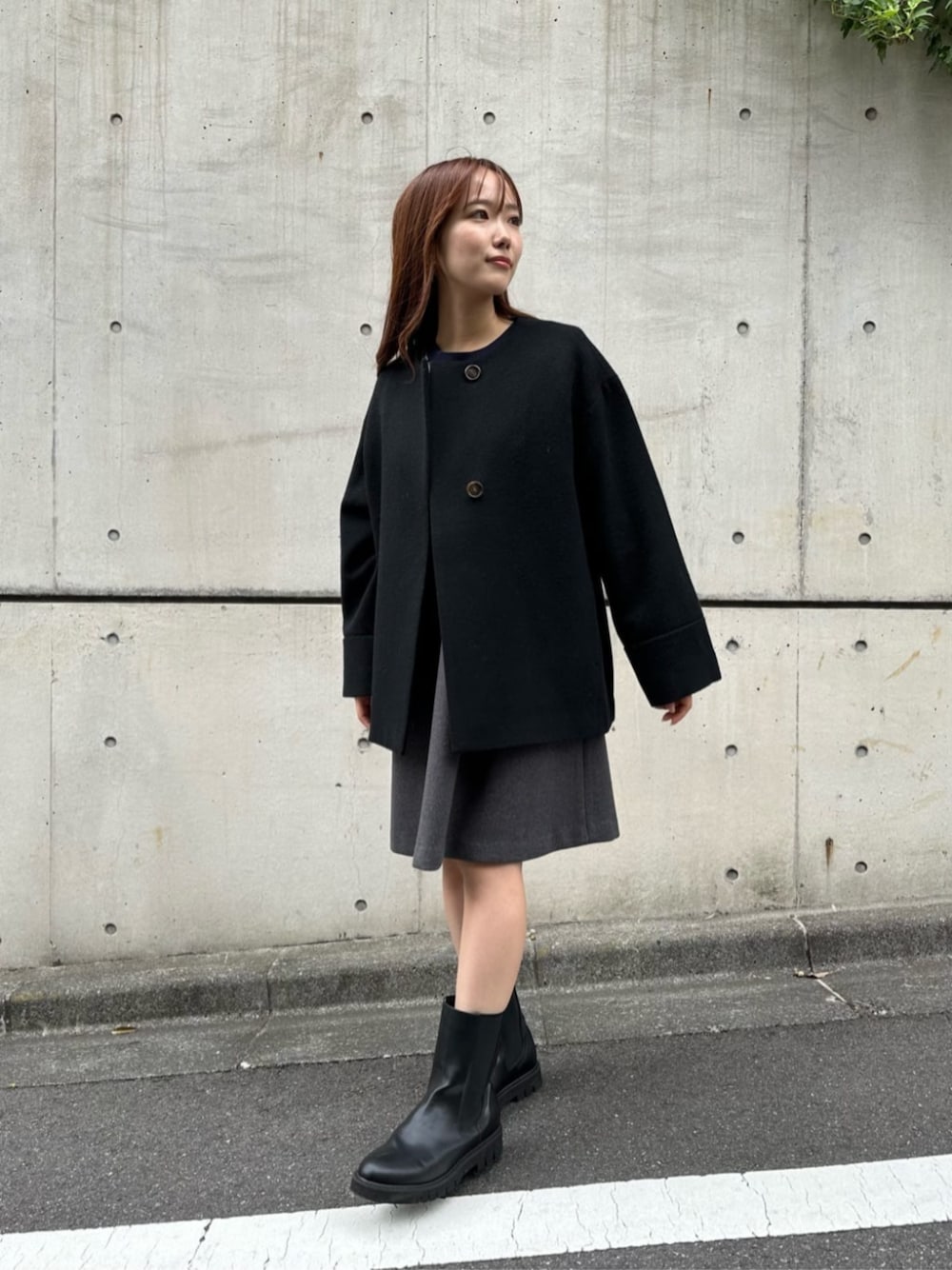 トレンドのミニ丈のジャンスカにボーダートップスを合わせたフェミカジコーデには、黒のコートを羽織って落ち着いた印象にまとめました。カシミヤが入った素材は着心地も柔らかく、着回し力の高いおすすめの一枚です。甘さを控えめに足元にはサイドゴアブーツを合わせて、コーデのアクセントにしたのもポイントです。
