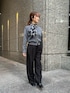 ピンクのシアーカットソーをインナーに入れたレイヤードスタイルはカジュアルな印象に。ニットカーデとリラクシーなパンツを使った着回しコーデはチェックのボウタイブラウスがアクセントになり、クラシカルな印象に。セットではもちろん、単品で回しの効く万能なアイテムです。