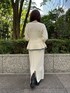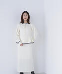 ニットながらペプラムシルエットのデザインなので、スタイルアップも期待できるのも嬉しいポイント。スリット入りのスカートは足さばきも良く、裏地付きなので安心して着ていただます♪単品使いも可能なのでお持ちのボトムスなどと着回しも可能です。