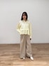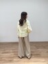 エンブロイダリーのレースの裾がポイントで一枚で着映えるおすすめのアイテムです。タック入りのパンツできれいめにまとめ、落ち着いた雰囲気に着こなしました。足元はシーンを問わず使えるローファーパンプスを合わせてスッキリとさせるのがポイントです