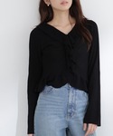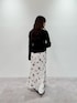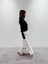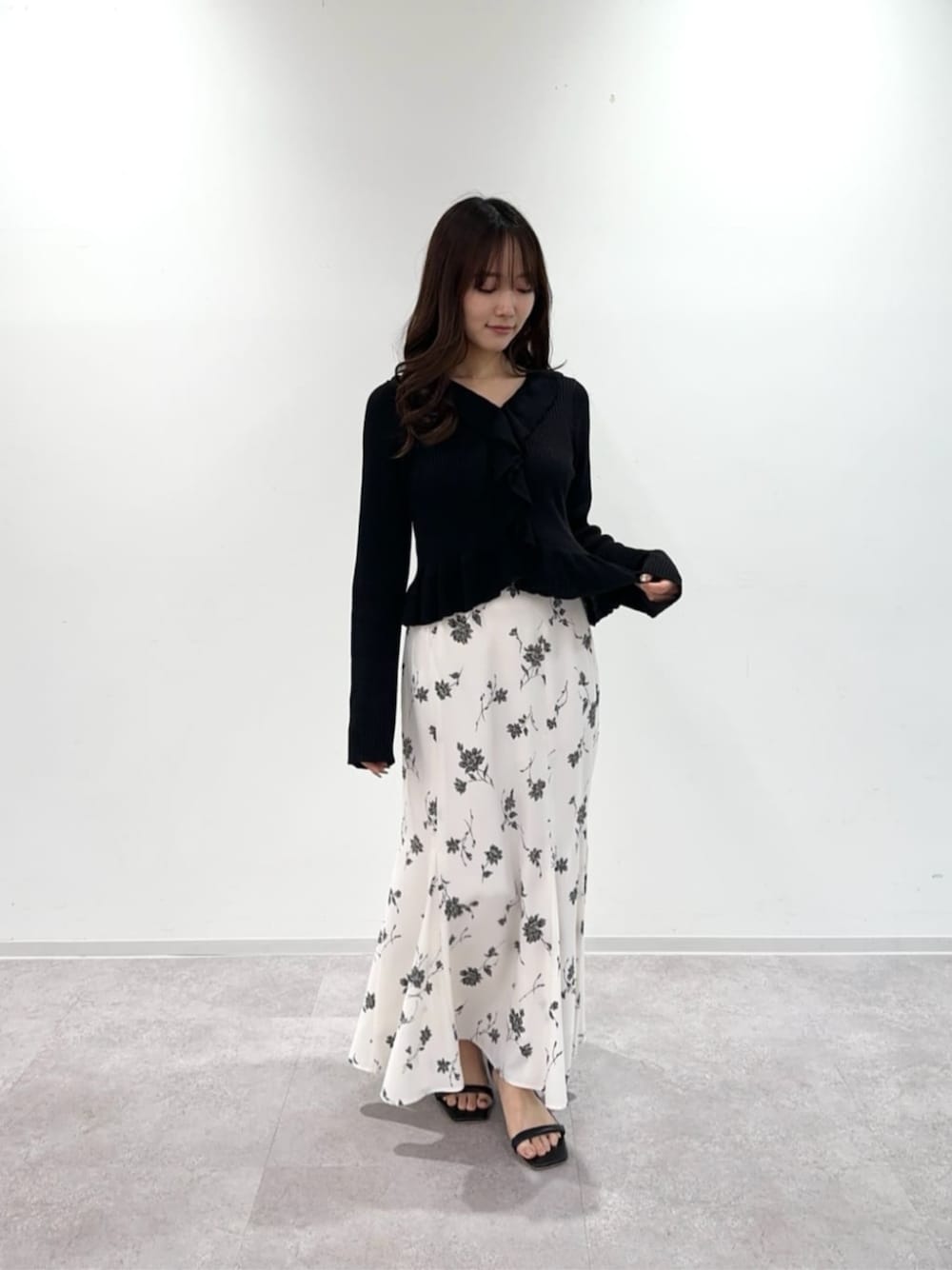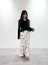 ニットはショート丈のため、腰位置が高く見えるもの嬉しいポイントです。モノトーンでまとめることで甘すぎないスタイリングになりおすすめです。