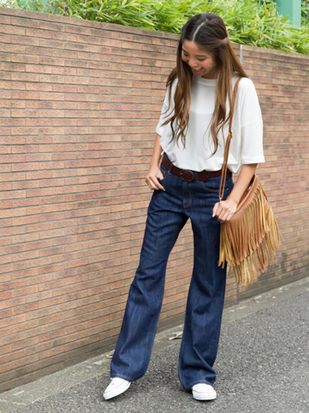 70s意識の初秋コーデ。バギーデニムとフリンジバッグはこの秋のMUSTアイテム♪