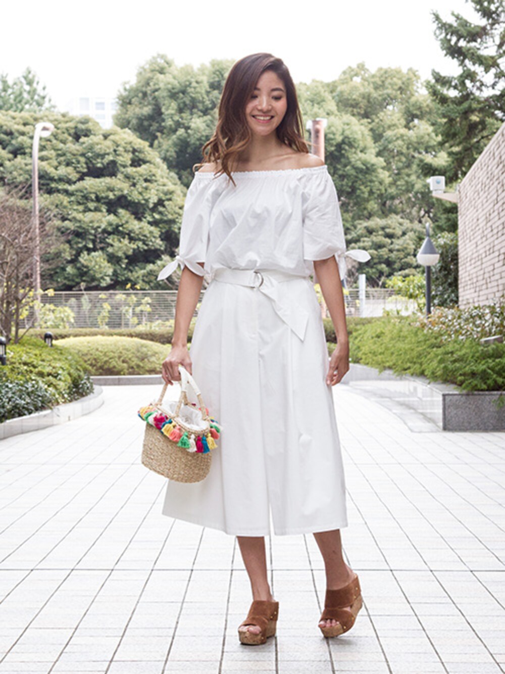 ON・OFF着回し力抜群!NBB×JJコラボコーデ オールホワイトでまとめたトレンドスタイルは、 フリンジアイテムをアクセントに。
