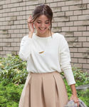 程よいボリュームのタックフレアスカートは軽やかなコーデに。小物も同系色でまとめて◎