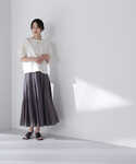 初夏のモノトーンスタイルは、重く見えない様に素材感に変化をつけるのがポイント♪ニットのラメと、スカートの光沢感と、シアー感が軽やかさを演出してくれます。スカートは通年通して着用して頂ける素材感なので、春夏は勿論、重くなりがちな秋冬のスタイリングにも軽さをプラスしてくれる着回し力抜群な1枚。