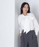 ツイーディー素材が秋らしいスタイリッシュなセットアップコーデ。トレンドのビスチェとワイドパンツのセットアップには、同素材のジャケットを合わせるのがおすすめ。ビスチェとジャケットが短丈のため、脚長効果も期待できます。中に合わせたブラウスはボウタイを片結びにして垂らし、コーディネートにアクセントをプラスしました。足元はショートブーツできれいめにまとめるのがポイントです。