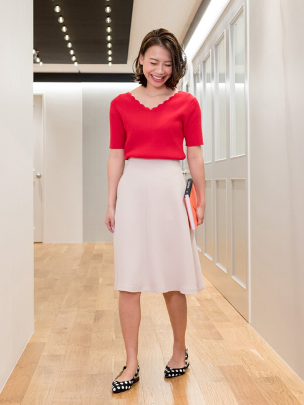 赤×ベージュのカラーコーデなら、いつものスタイルがぐっとおしゃれに♪