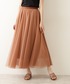 チュールなのに「洗える」が嬉しいポイント。オフィスカジュアルスタイルにも取り入れやすいロング丈のチュールスカートは、明るめのブラウンがコーディネートの鮮度アップに。ボクシーシルエットのジャケットなどとも相性が良いので甘くなりすぎないスタイリングも◎