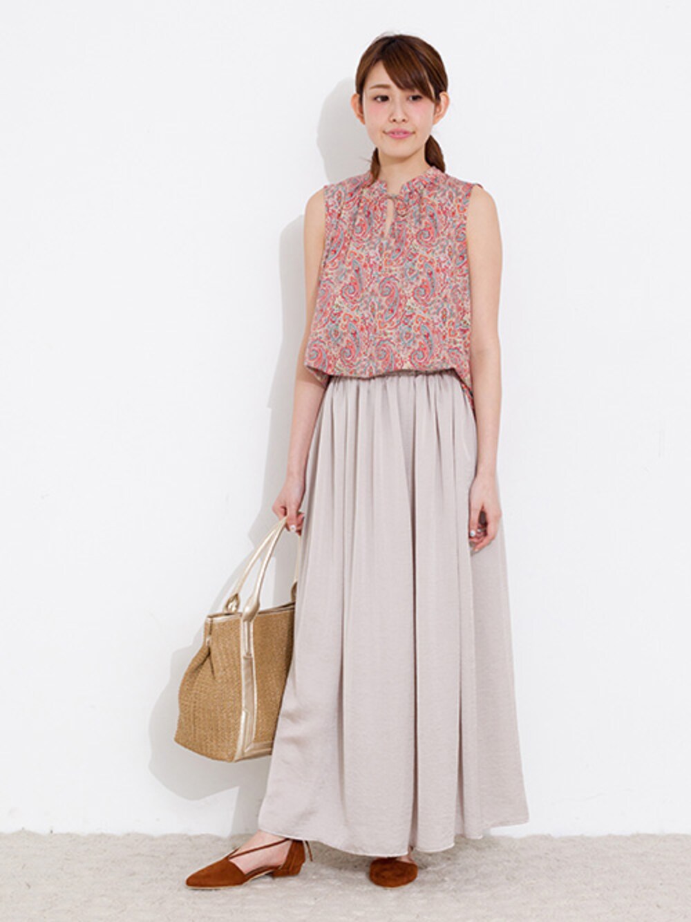 【新作リバティプリント】 グッと大人っぽいペイズリー柄ブラウス。 艶感のあるスカーチョと合わせて女性らしいリラックススタイルに。
