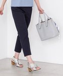 上品なブルーのレイヤードブラウス。 通勤パンツスタイルもフェミニンに。