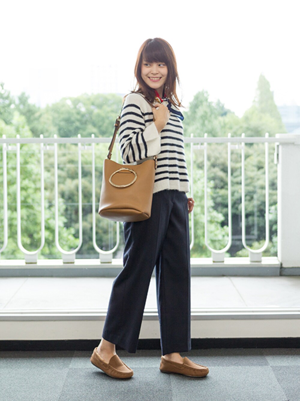 Winter Marineスタイル。小物をキャメルでまとめて、大人っぽく。