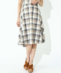 イレヘムラインのフレアスカートは大き目のブロックチェックが印象的。柄に入っている白をトップスに入れることで全体がまとまります。この季節なら足元サンダルが気分♪