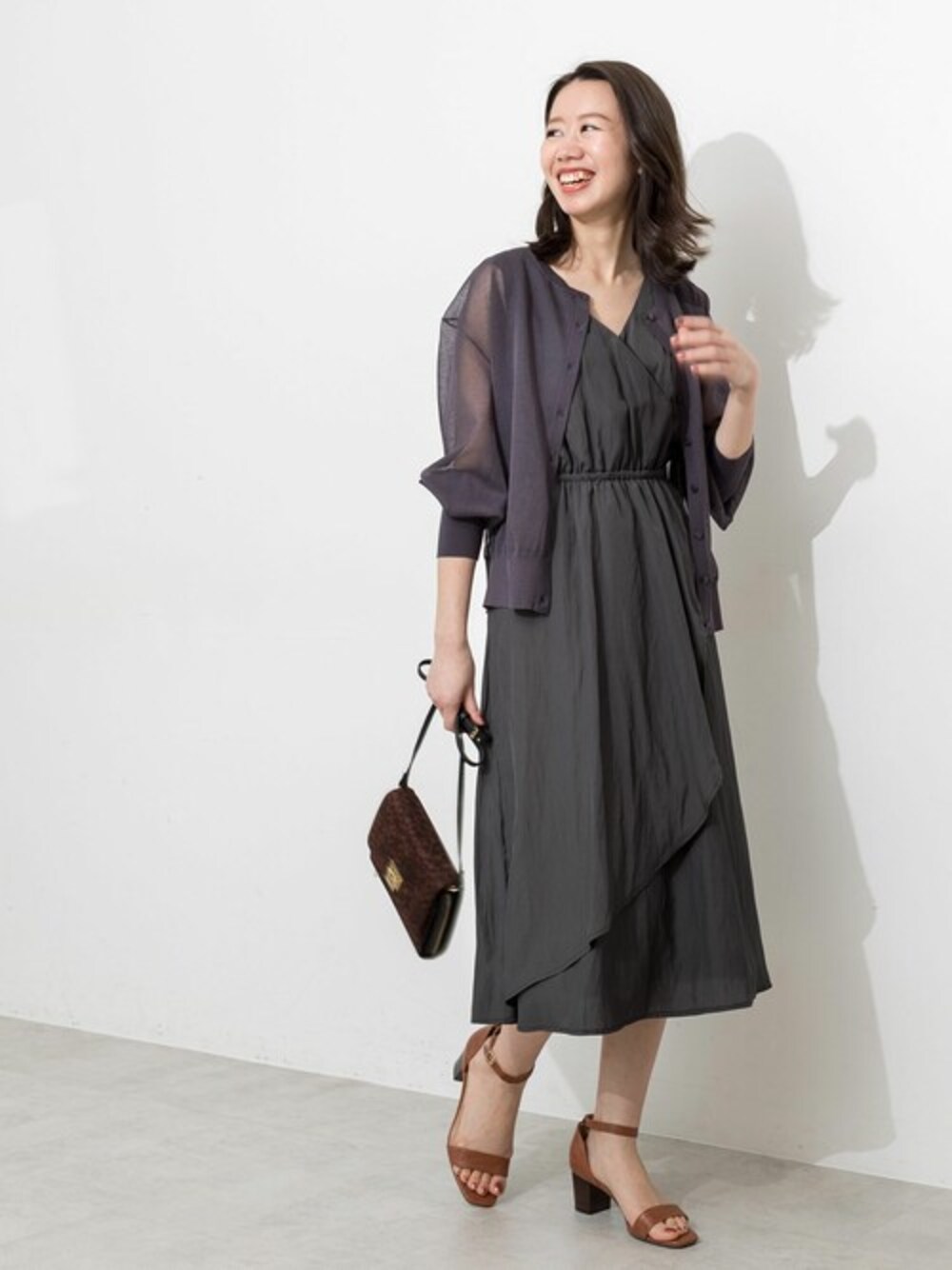 これからの季節重たくなりがちなモノトーンコーデもシアー素材を取り入れることで抜け感がでて軽やかにまとまります。ちょっと大人なチャコールグレーでまとめてオフィスでもちょっとしたお呼ばれにも♪