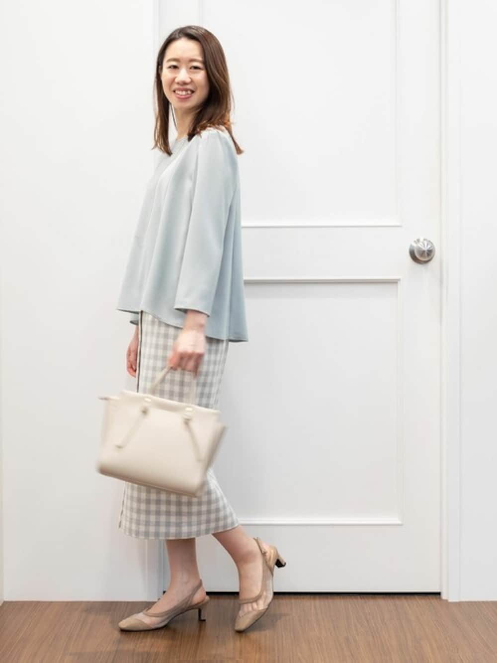 大きめのギンガムチェックが印象的なストレートスカート。幼い印象になりがちなチェック柄は、フレアラインのブラウスをあわせて、シルエットにメリハリを。淡いトーンでまとめることで、大人っぽくこなせます。爽やかフェミニンコーデで、春モードを高めたい♪