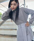 毎年人気のFOX混ニットは、きれいめからカジュアルまで幅広いスタイリングが決まる万能アイテム♪秋らしいグリーンのスカートを合わせたスタイリングは、オフィスシーンにもおすすめのスタイリングです。同シリーズのニットをアンサンブル風に巻いたのもポイント。