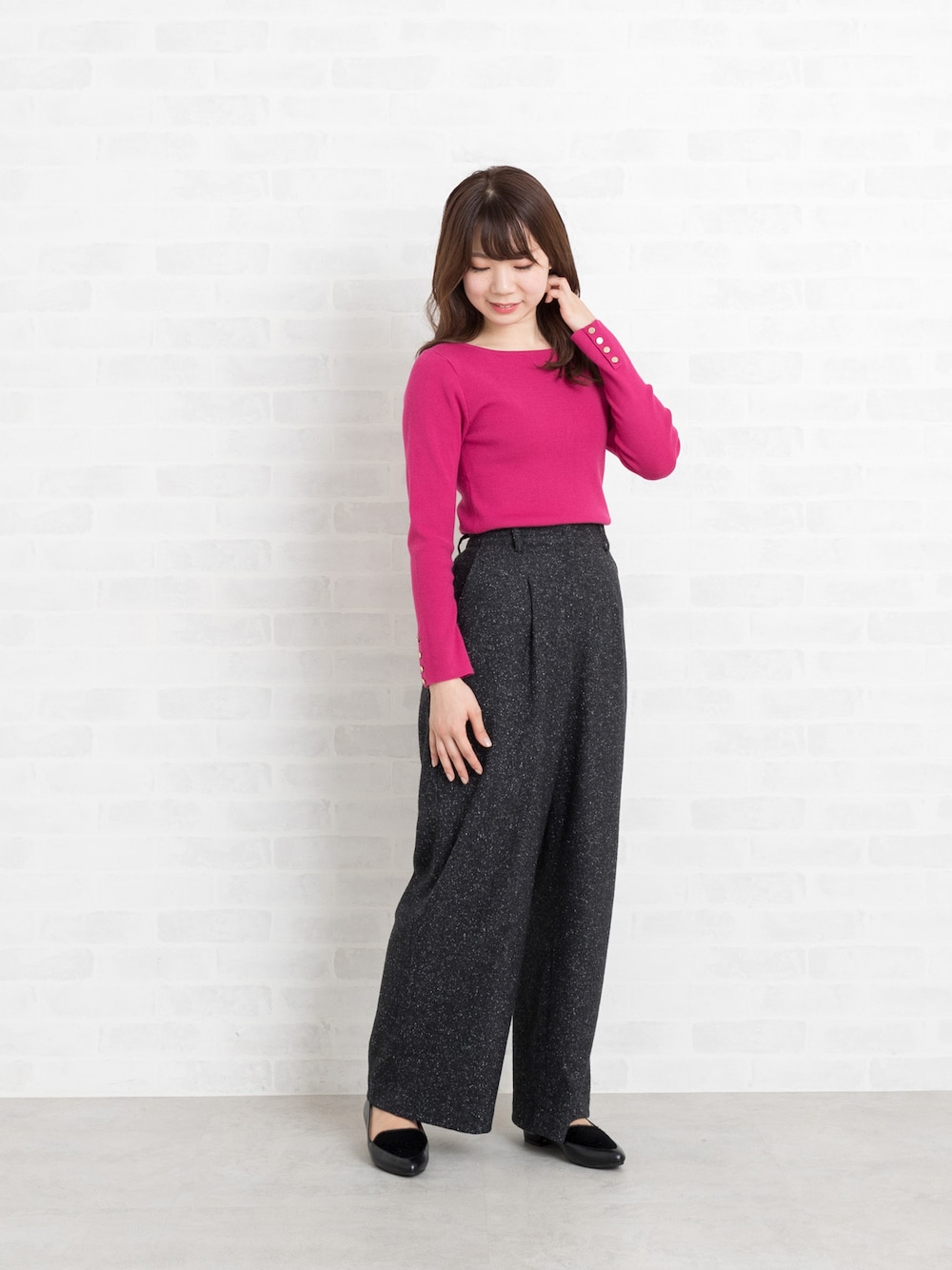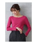 【NBB×CanCam】今すぐ使えるコラボニット♡ 華奢見えの程よいボートネック、袖口に配したつや消しゴールドの上品ボタン。抜け感のでる9分袖。シンプルだからこだわったリブニット。パンツスタイルにはパキッとピンクで大人かわいく。