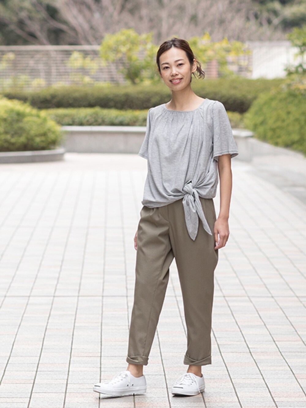 スッキリシルエットでONにもOFFにも合わせやすい♪ツイストカフスペグパンツ。 スニーカーあわせの休日スタイルも、好バランスで決まります。