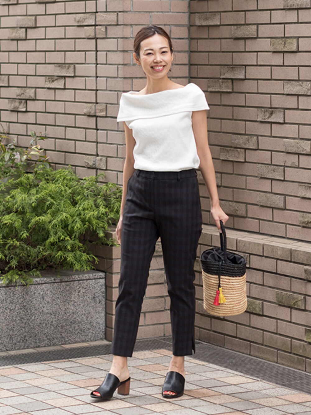 さりげないシャドーチェックがシンプルスタイルに表情をプラスしてくれます。