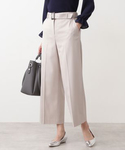 広がりすぎないややストレートラインを描いたワイドパンツなら、コートを着てもスッキリと。パンツスタイルは、カッチリしすぎず、抜け感をだすのがポイント。ほんのりとした透け感のあるスリーブのニットはキチンと見えながらもレディに仕上げてくれます。