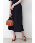 光沢感のあるスエードライクなセットアップはトップスのウエストマークとプリーツスカートでスタイルアップ見えが叶う逸品。ブラウスはインでもアウトでも着回せます。